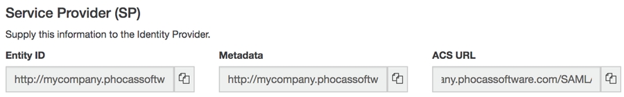 Copy the Service Provider (SP) and paste it into your IdP application.