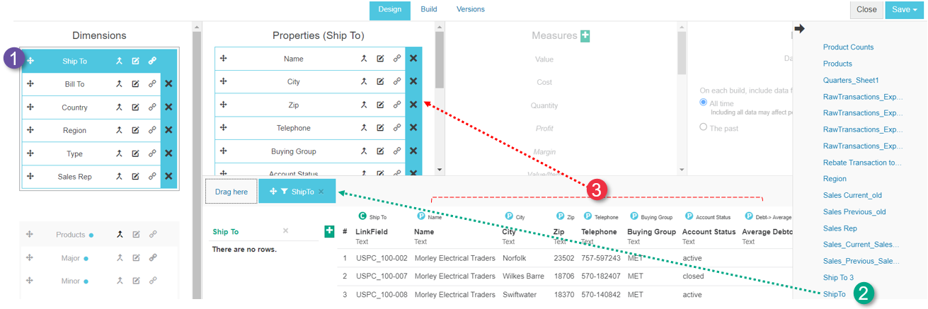 The Replace option is particularly useful when you want to modify an existing design. It allows you to replace an existing data item with a new one (such as an updated version), but maintain the existing mappings. This option saves you a lot of time, as you would otherwise have to manually un-map and re-map the individual dimensions, properties, and so on.