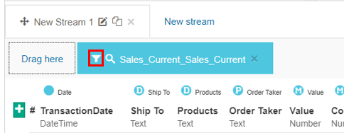 In the stream section, in the data item tab, click the Filter button.