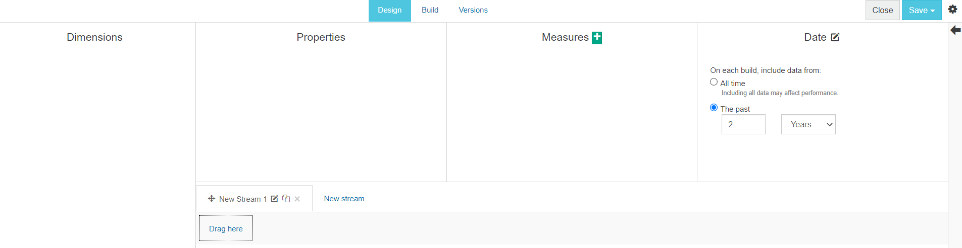 The Design screen opens on the Design tab. This a template that allows you to bring in the data elements into your database design. You can now proceed to design your database.