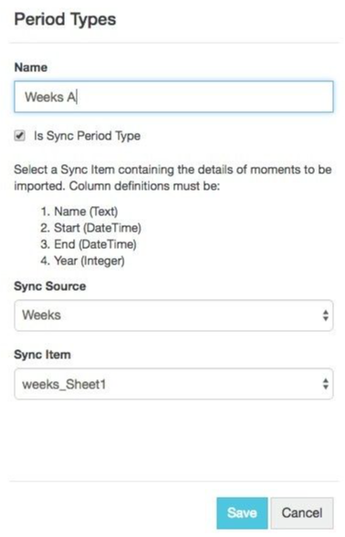 The moments within a period type linked to a sync item can only be edited by re-syncing the item.