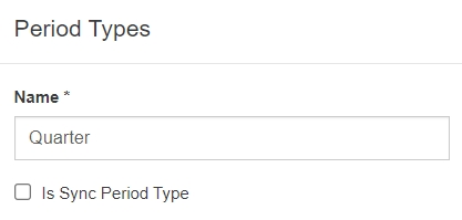 In the Period Types window, enter a name for the new period type, for example, Quarter.