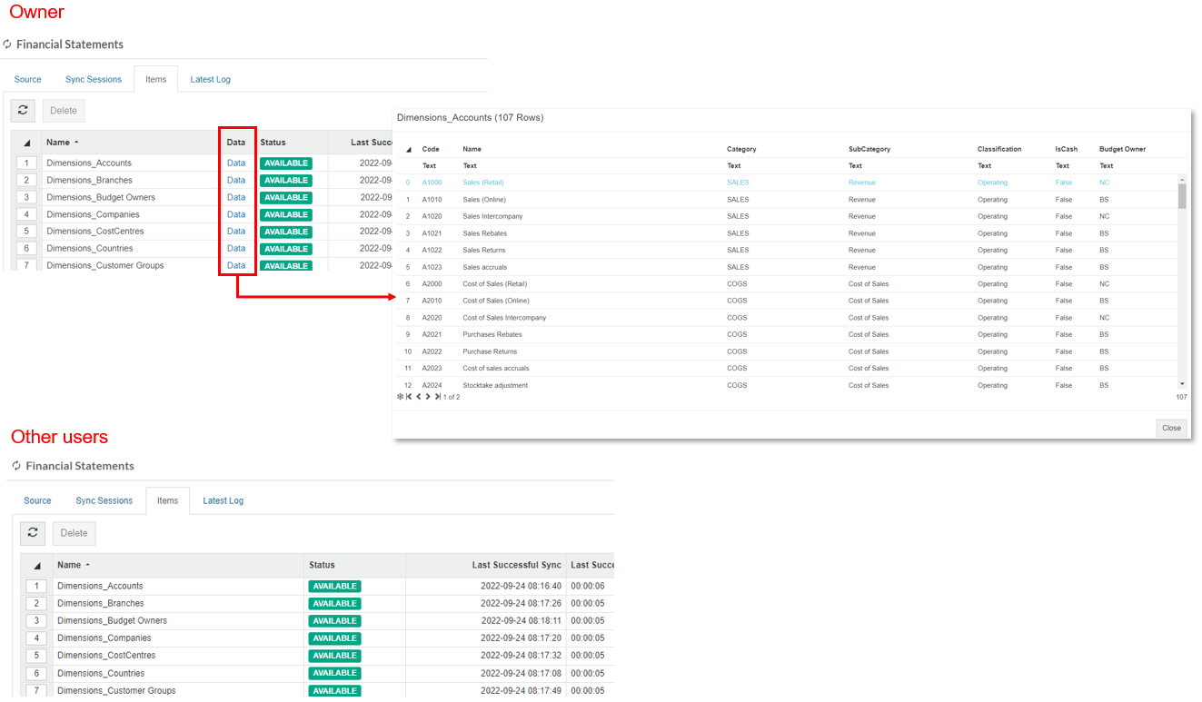 Now when other admin users view the sync sources, they can open the source to view its items but not query any of its data; only the owner can query the data.