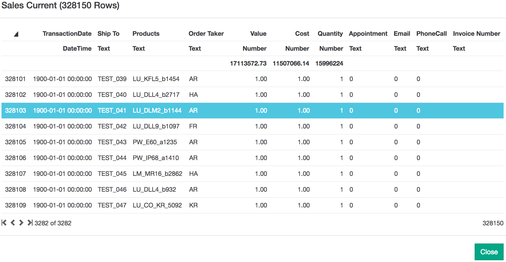 View the data: Click the blue Data link to display a window containing a preview of the data.