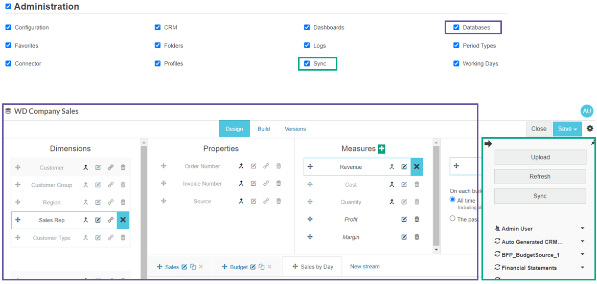 By default, the Administration permissions of Databases and Sync go hand-in-hand to allow users to access the Designer and Sync modules, and manage databases that are built from sync sources.