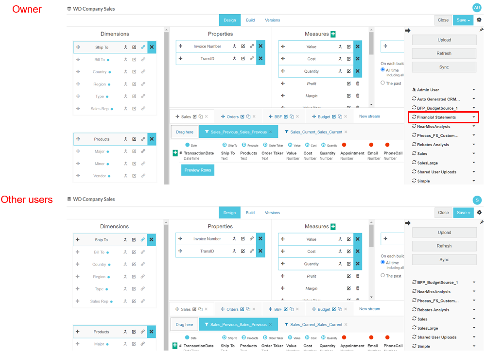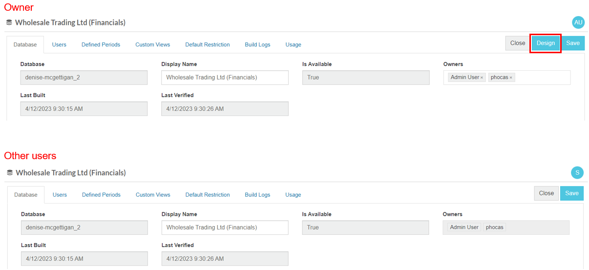 Other admin users cannot open the financial database in Designer; only the owner can do so. This ensures those other admin users have no way in which to view the underlying data.