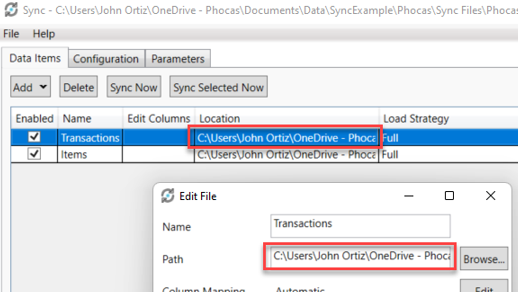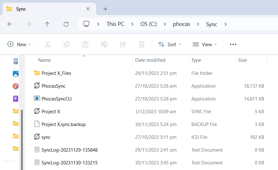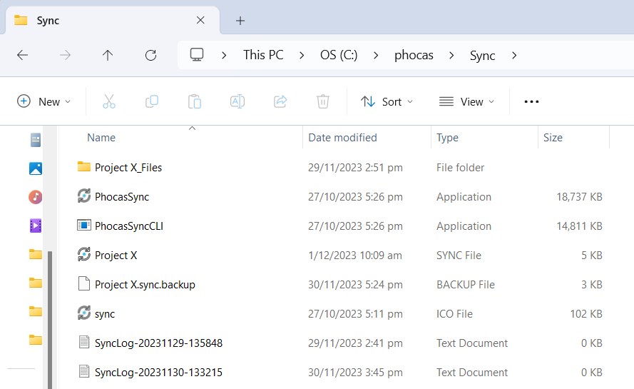 Locate the folder on your computer that contains your sync files. This folder is typically labeled Phocas and contains the sync executable and configuration files. It might also contain scripts and raw data folders.