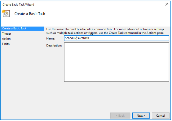 Open Windows Task Scheduler, create a basic task, give it a name, and click Next.