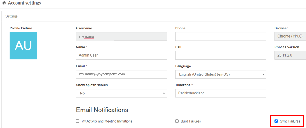 To receive an email alert if a Sync fails, go to your account settings and select Sync failures under Email notifications.