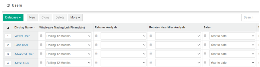 As an administrator, you control who sees what in Phocas by determining the databases each user can access and restricting access to certain data within those databases. You can make these changes for individual users one at a time, or multiple users in bulk.