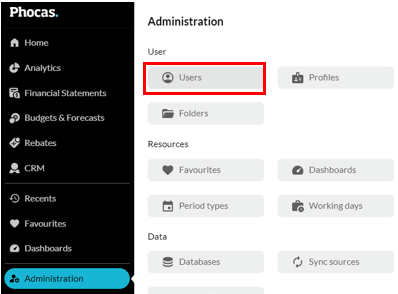 In the Phocas menu, click Administration > Users.