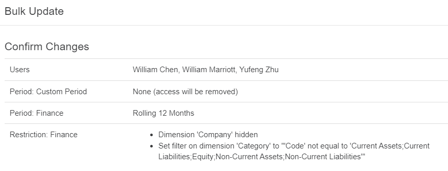 Review the changes you are about to make, then click Confirm to apply the changes to the selected users.
