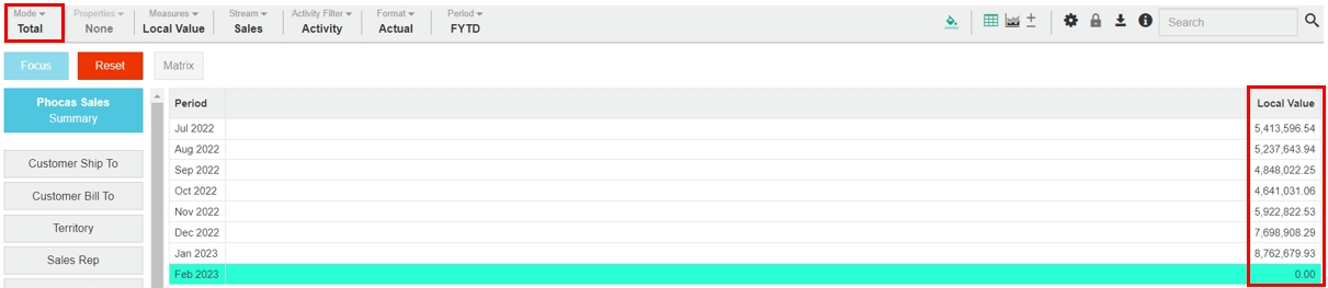 Total mode is the simplest mode available, giving you the most basic view, focusing on the total values. This mode is particularly useful when you have multiple measures selected.