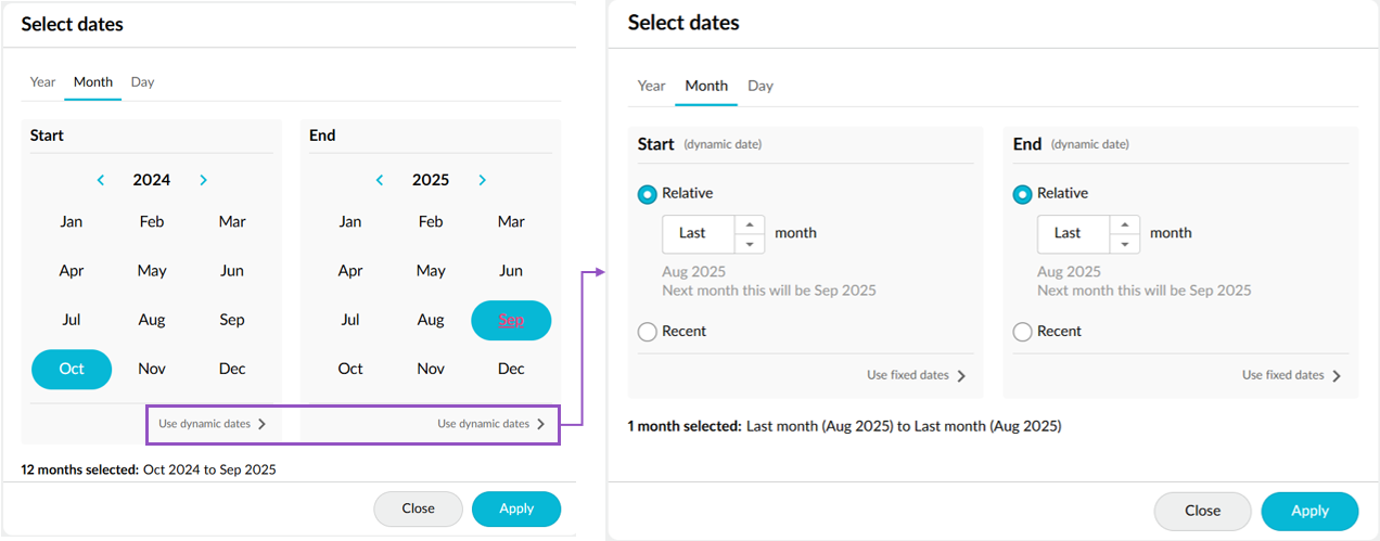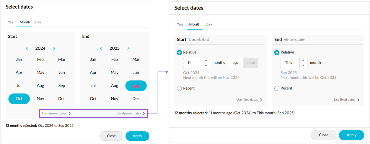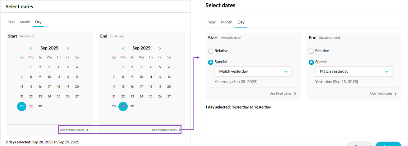 3. Choose whether to apply **fixed** or **dynamic** date range.&#x20;