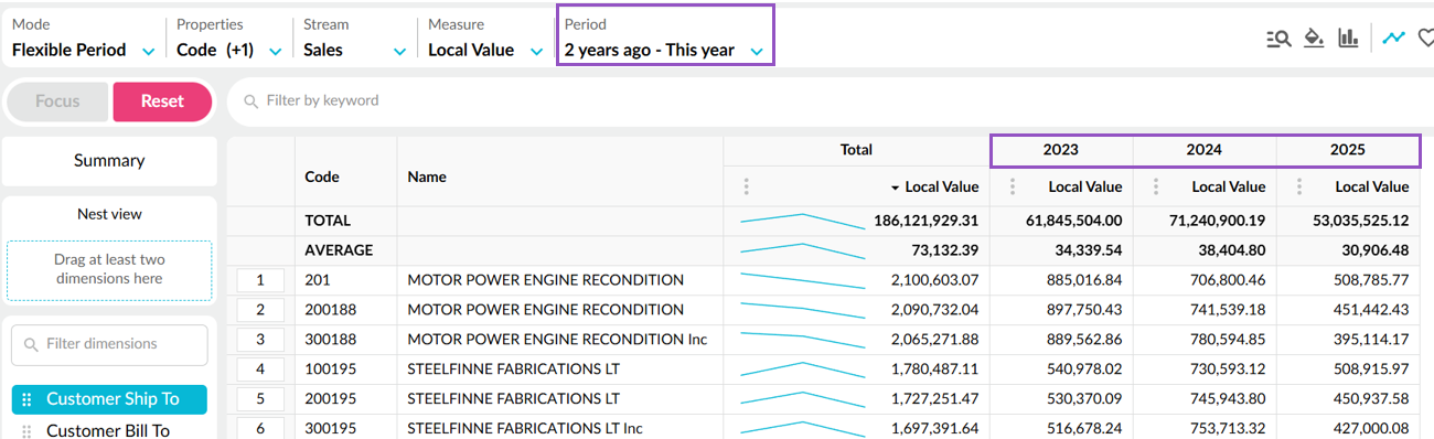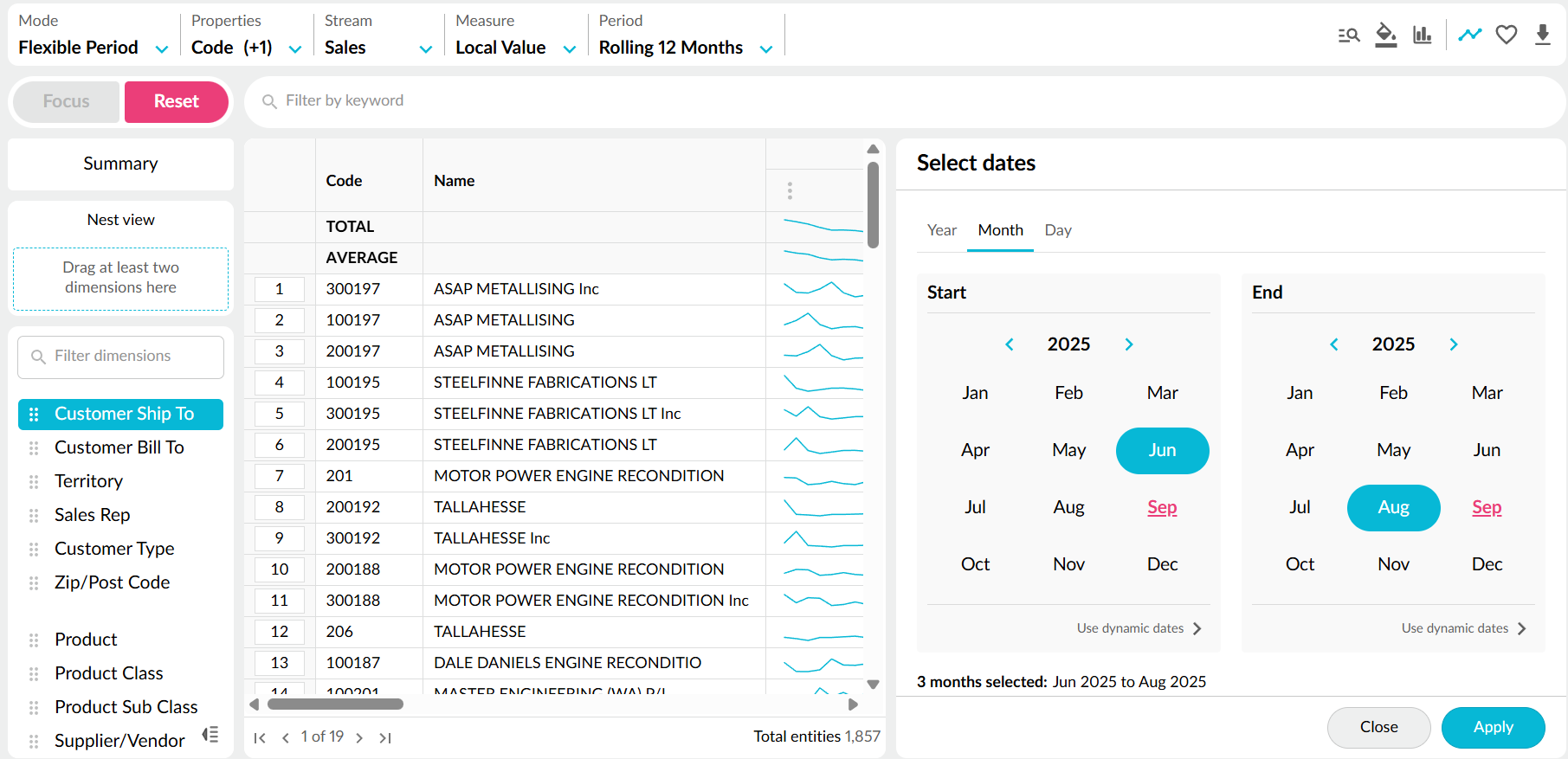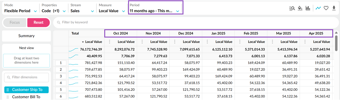 Dynamic ranges are useful for ongoing monitoring because if you [used in favorites](https://docs.phocassoftware.com/analytics/flex-modes/save-and-share-a-favorite), you always see the latest data without having to reset the period manually.
