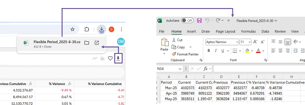 Click the Export button in the toolbar in the top-right above the grid, then download open the file.