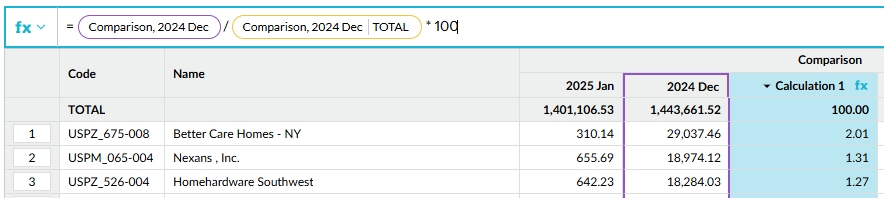 You enter formulas in a similar way to how you do it in Budgets & Forecasts, and other spreadsheet software, such as Microsoft Excel or Google Sheets.
