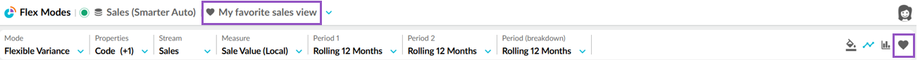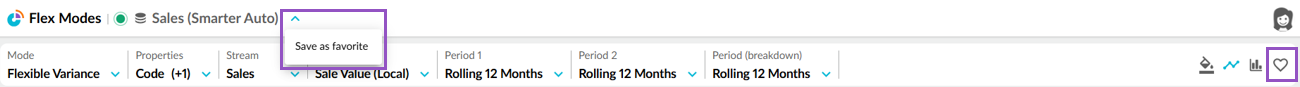 When you save a favorite in a mode that has dynamic periods, then open the favorite later, the data automatically updates according to that period. For example, if Period 1 is Last month and today is December, you'll see November's data. If you save a favorite, when you open it next month (January), Period 1 will still be the Last month, but you'll see the data for December.