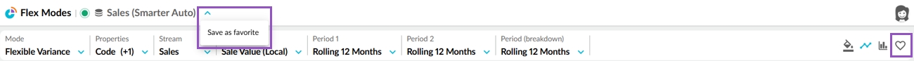 Either start from scratch and save a brand-new favorite or use an existing Flex mode favorite as a starting point. When you save a favorite, you become its owner and other actions become available, as shown in the image below.