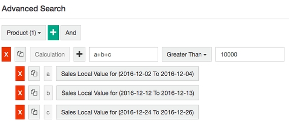 You can edit the rules you apply to an advanced search, for example, if you make a mistake or want to try a different scenario. If you need to create a number of similar rules, you can copy one an entire rule or a variable within a calculated rule. This will add a new rule directly below the current rule with exactly the same settings, which you can edit as required.