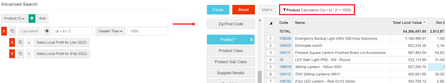 In the Sales database, select the Product dimension, then access the advanced search and create a Calculation rule as follows: