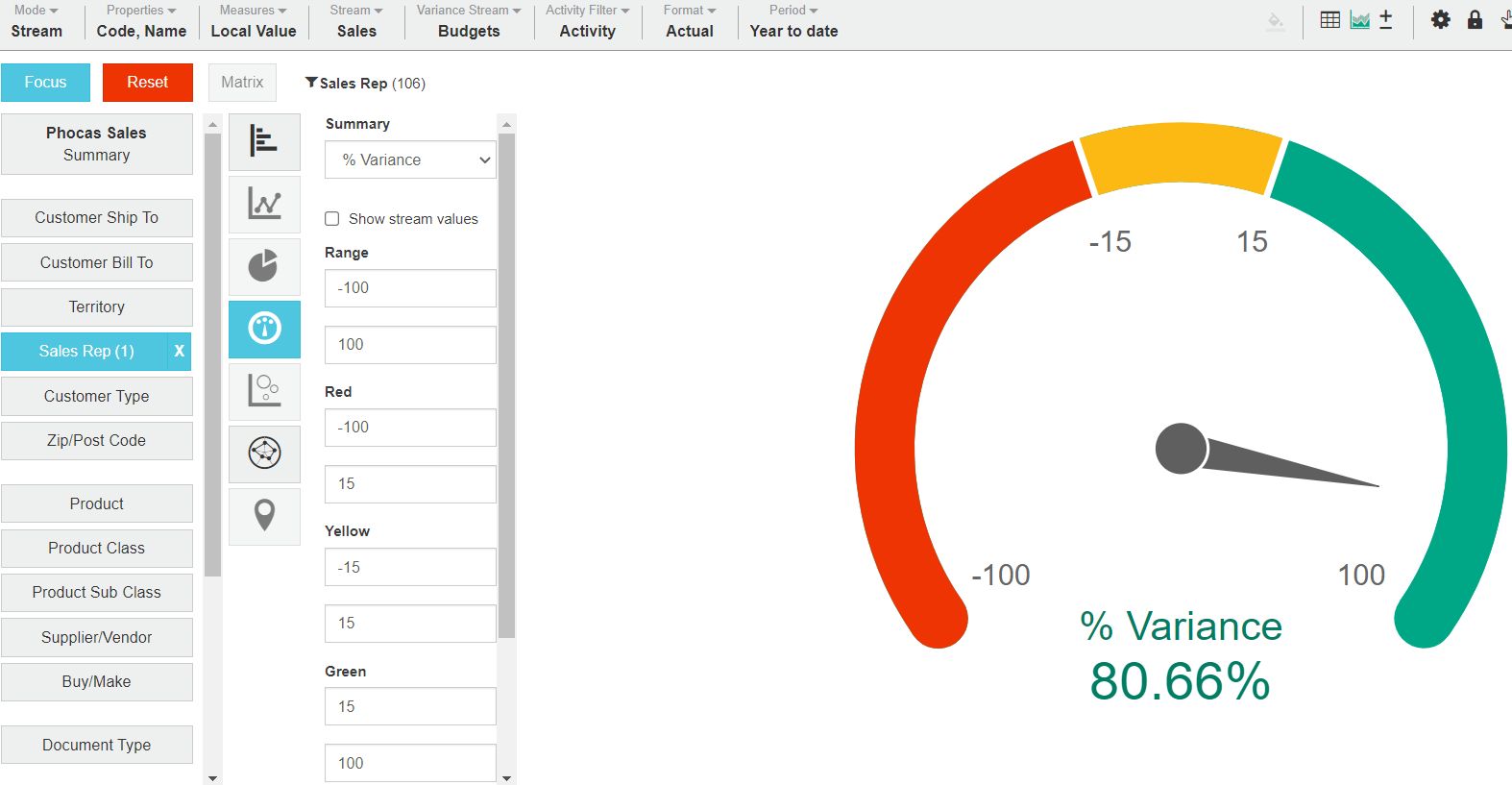 Select Mode > Stream, Stream > Sales and Variance Stream > Budget.