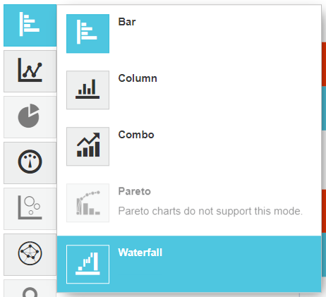 Click the Bar chart category button on the left of the chart and select the Waterfall option.