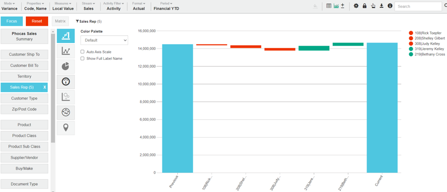 Focused view (when you select and focus on items in a dimension) - Variance mode only.