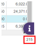 In the bottom-right corner of the grid you can see the record count. The record count is the number of rows of data in the grid, which might be across multiple pages, not just the rows you see on the screen at the time. The record count updates when you make changes to the data, such as select a dimension or change the period.