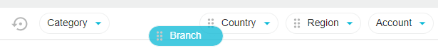 The order in which the dimensions display in the dimension filters area above the grid determines how the levels are organized in the budget. If there are multiple levels in a budget, you can change the order in which the middle levels display. For example, in the following image, you cannot change where the top-level (Category) or bottom-level (Account) dimensions sit but you can reorder the other levels, as indicated by their Move buttons.