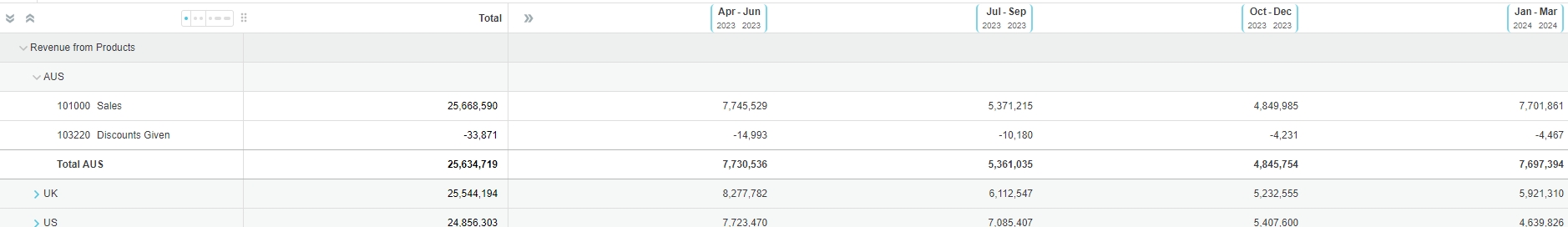 To view the period columns within a group, click the header of the group to expand the group. You can then edit the values as usual (yellow background) if you have been assigned tasks in the workflow.