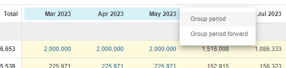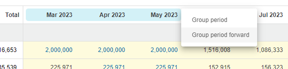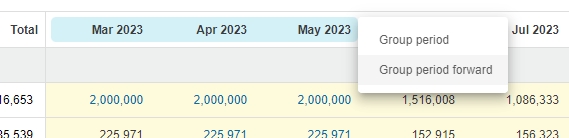Click Group period to group the selected period columns into one ‘total’ column. You can repeat this action manually for other periods in the worksheet