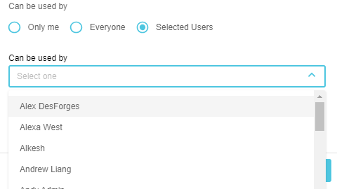 Selected users: Share your layout with a subset of the users who have access to the worksheet. When you select this option, you can select one or more Budgets & Forecasts users from the list that displays.