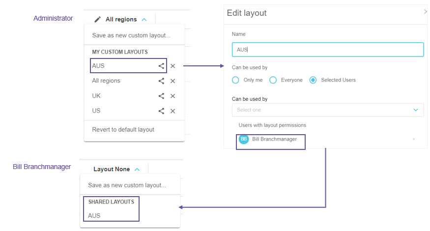 Layouts work alongside your organization’s workflow practice and workbook access, as the sharing of layouts works differently, depending on your user role: