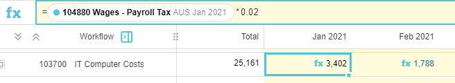 Your IT Computer Costs are a function of wages. In the formula below, the IT costs are 2% of AU wages.