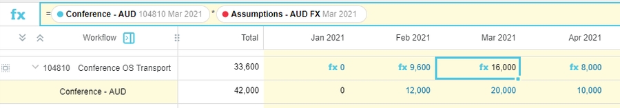 To enter more advanced formulas, you can reference values in other cells in the same worksheet (including those in comparison, sum and working lines) and in other worksheets (such as driver tabs).