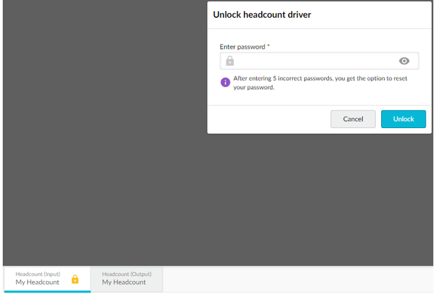 Access to the headcount. The Headcount Input tab is locked with a password that is used to encrypt the data. Each user who is invited to use the tab needs to create their own password.