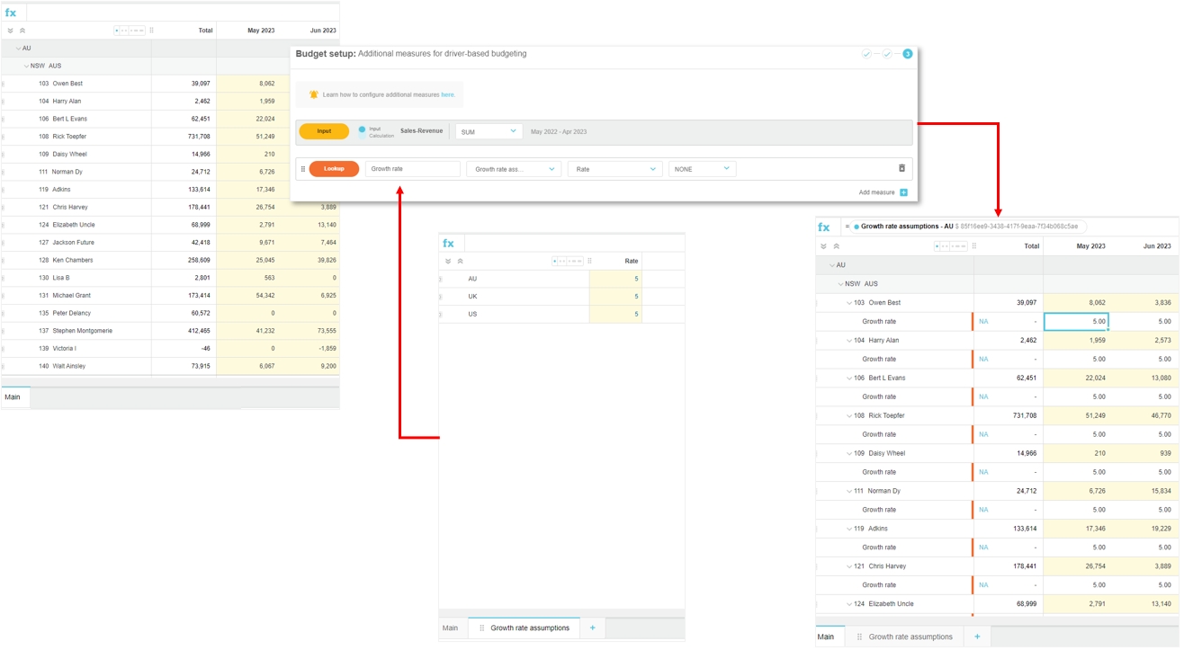 Next, edit the setup of the related tab to link to the lookup data. See Additional measures (for driver-based budgeting) for detailed information, but in summary, the steps are as follows: