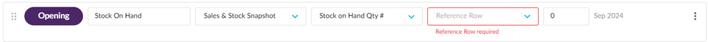 Select the measure that determines the opening value, such as Stock on Hand Quantity.