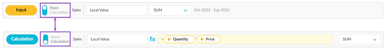 In the primary input row, click the blue Input button. To convert back to input format, click the button again. See the Add a calculation row section above for information on how to enter formulas.