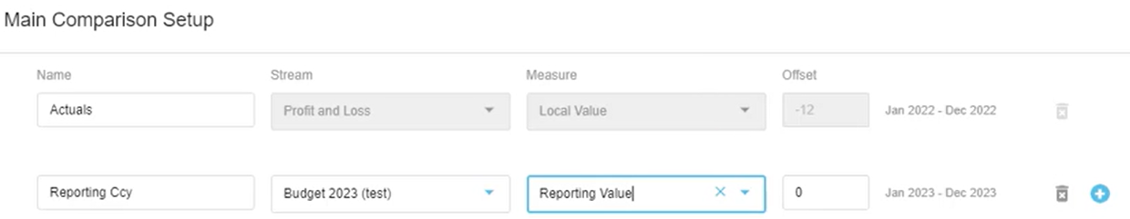 * Add a comparison row for the budget stream with the reporting value measure.