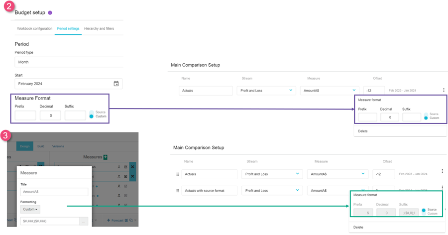 See how the format of a measure in the database design determines the default (source) format in Budgets & Forecasts
