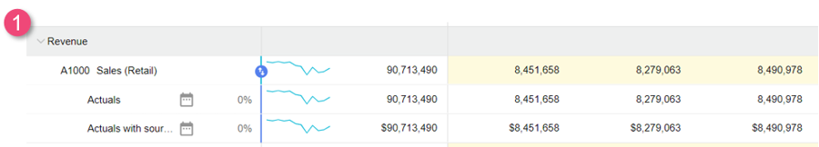 The following examples demonstrate how you can apply a custom format to measures in different places throughout Budgets & Forecasts.