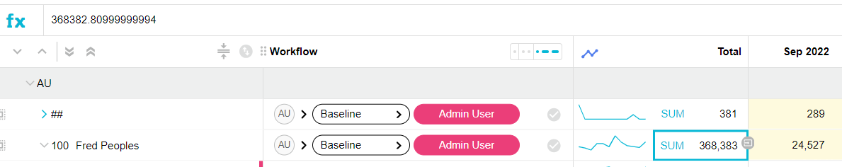 By default, the measures in working and sum lines take on the same formatting as the measures in the parent row, which comes from the budget or workbook tab setup. There’s no source formatting option for either line type, as their values don't come from an underlying database.