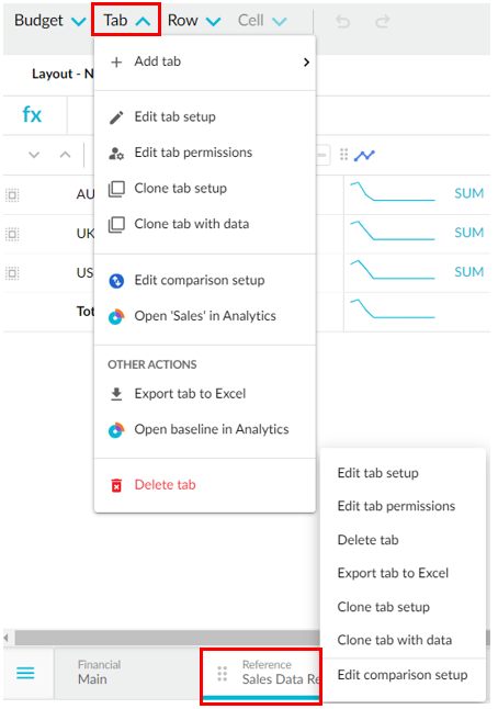 When you delete a tab, the entire worksheet and any data it contains is removed from Phocas and cannot be restored.