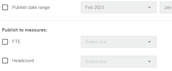 <table><thead><tr><th width="179" valign="top">Option</th><th>Description</th></tr></thead><tbody><tr><td valign="top"><strong>Only publish completed rows</strong></td><td><p>This option only publishes the rows marked as completed in the workflow.</p><p>When selected, it allows you to publish what you are confident are the final budget values and ensures that incomplete budget values do not appear in the Financial Statements or Analytics modules until they are completed.</p><p>This option is also suitable if you are working on a particular section of the budget, such as Revenue, and you only want to publish that section, as that’s all you are interested in.</p></td></tr><tr><td valign="top"><strong>Include zero value rows</strong></td><td><p>This option publishes all rows in the worksheet, including those that have zero values (0.00) in all their cells. It is selected by default.</p><p>If you don’t want to include the rows with zero values, clear the checkbox. The exclusion of zero-value rows from the published dataset is useful if you are exporting to Microsoft Excel, as there will be no redundant, zero-only rows.</p></td></tr><tr><td valign="top"><strong>Delete all existing records from the published stream that match the budget period</strong></td><td><p>This option is available when these two criteria are met:</p><ul><li>You have already published the budget to a stream; in other words, there's an existing stream.</li><li>You have applied a <a href="../create-a-budget/filtered-budget#filteredbudgets-1budgetfilter">dimension entity filter</a> in the budget setup.</li></ul><p>When selected, it overrides the default publishing behavior, so all the values in the stream (that match the workbook period) are deleted and replaced.<br>This is useful if you are using the filters to remove dimension entities<br>from your budget. For example, you might want to remove products that<br>you no longer sell by filtering them out in the workbook setup. If you<br>have already published the workbook with the products included and<br>then filter them out, you will not remove them with the subsequent<br>publish. In this scenario, the checkbox can be selected to delete the existing records.<br>Please note that this checkbox doesn't override the behavior for a<br>single entity filter and isn't available when a single entity filter is the<br>only filter applied in the setup.</p></td></tr><tr><td valign="top"><strong>Publish to days</strong></td><td><p>This option overrides the default behavior whereby the budget period value is published into the first day of that period. It splits the budget period value proportionally by the number of days in the budget period and publishes the data to each day in the period.<br>Select the checkbox, then select one of these options to calculate the number of days:</p><ul><li><strong>Calendar Days</strong>: The number of days in each period in the budget. For example, if you have a monthly budget, you will get 30 days for November, 31 days for December and so on.</li><li><strong>Week Days</strong>: The total count of the number of Monday through to Friday days in the budget period. For example, you will see 20 days in the months that have 4 weeks and 25 days for the months that have 5 weeks.</li><li><p><strong>Working Days (calendar)</strong>: The number of days based on a selected predefined <a href="https://app.gitbook.com/s/vQCmtGTR7MsjcI62Vdki/periods-administration/working-days">working day calendar</a>. For example, you might have a calendar for your region that excludes public holidays. See example 1 below to learn more about this option.</p><div align="left"><figure><img src="https://content.gitbook.com/content/aNH5UMuZXBHuAbFF7nI2/blobs/n3ez0WhwFUYJzJXBuf5s/image.png" alt="" width="375"><figcaption></figcaption></figure></div></li><li><strong>Months</strong>: Workbooks where the period type is <em>Year</em> include the<br>option to publish to months.</li></ul></td></tr><tr><td valign="top"><strong>Publish date range</strong></td><td><p>This option publishes values for a particular date range and is useful<br>in the following scenarios:</p><ul><li>When publishing very large workbooks, publishing can take a long time and may fail due to the server becoming overloaded. In this scenario publishing only the periods that have been amended or breaking the budget up into smaller increments can help (for example publishing by quarter).</li><li>When reforecasting, you might want to replace the remaining periods in the year (forecast periods) and not publish the periods populated with actuals.</li></ul></td></tr><tr><td valign="top"><strong>Publish to measures</strong></td><td><p>This option is available when publishing the Headcount Output tab to a statistical stream.</p><p>Select the measures you want to publish the <strong>FTE</strong> and <strong>Headcount</strong> data to.<br><img src="https://content.gitbook.com/content/aNH5UMuZXBHuAbFF7nI2/blobs/ACl2rKg6cPuZzqXOtgWO/image.png" alt=""></p></td></tr></tbody></table>
