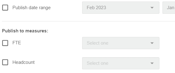 You can publish the Headcount Output tab as a statistical stream (Headcount and FTE). This can then be used in Financial Statements to compare to actuals and for budgeted financial metrics. The Publish option isn't available in the Headcount Output tab if no dimensions are included in the budget hierarchy.
