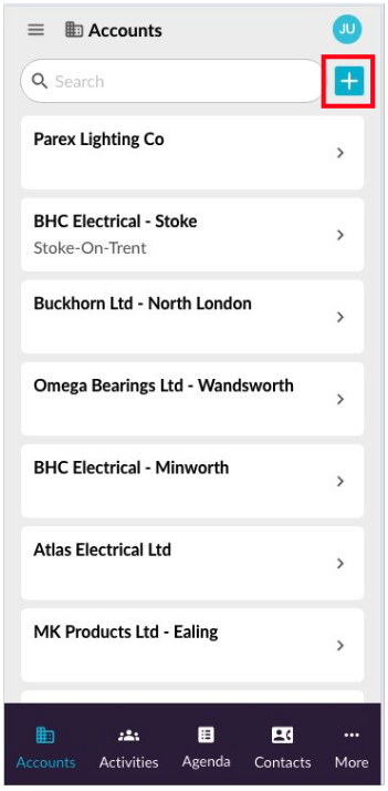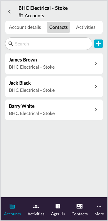 1. Open the **Accounts** page, then type *BHC Electrical - Stoke* into the search box.