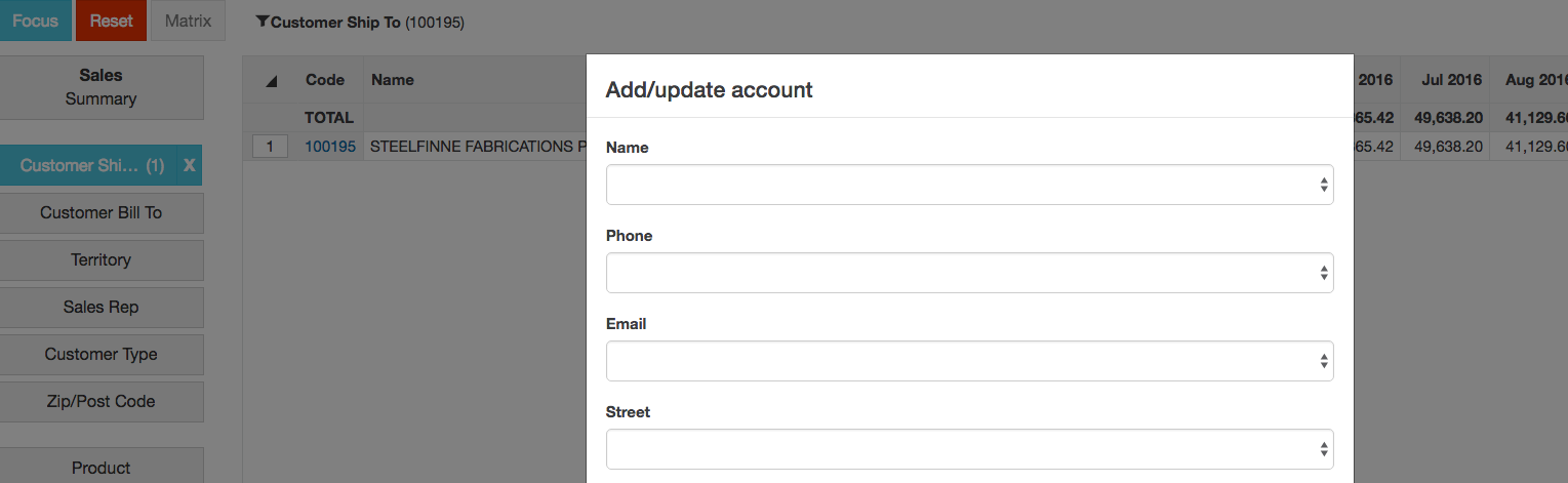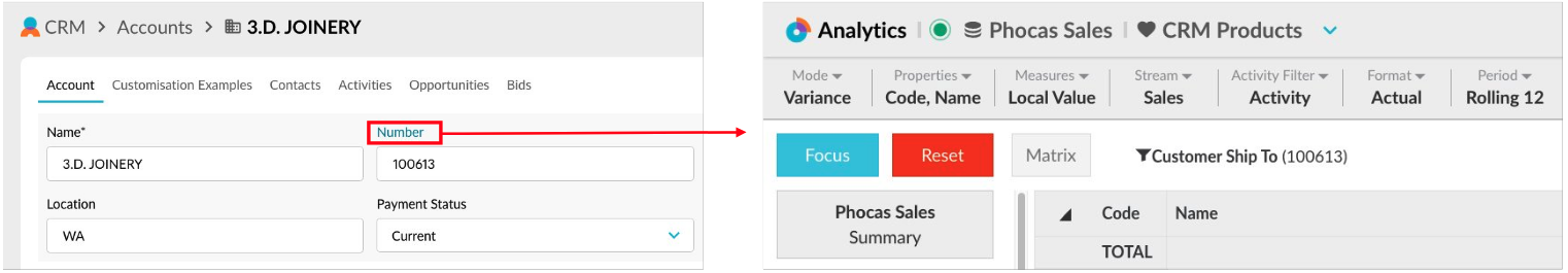 To view the information about an account that stored in Phocas, such as its sales figures or the products it purchased, you can open Analytics directly from CRM.