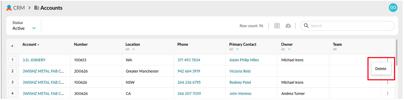 Select the CRM menu button > **Accounts**.